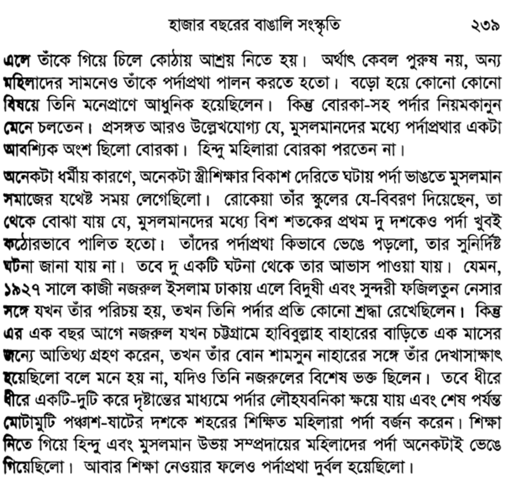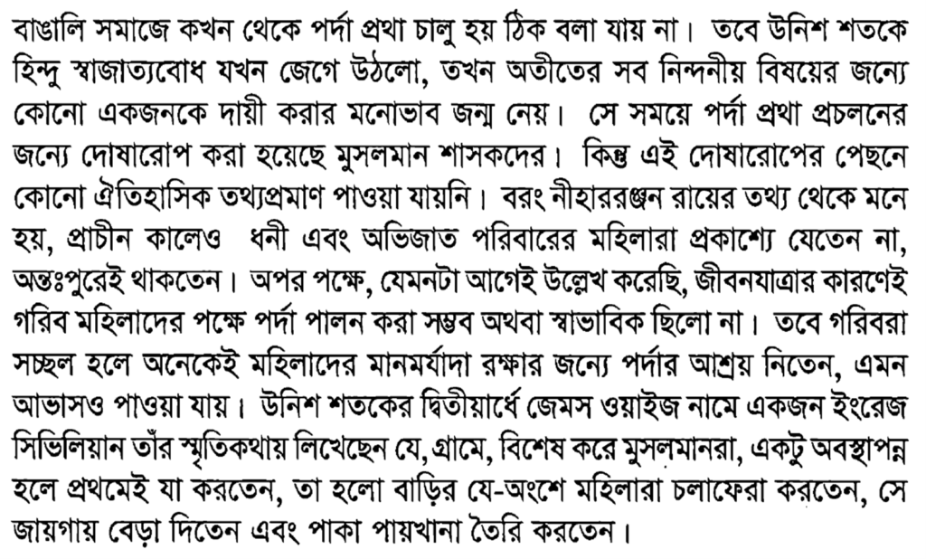 ৪. প্রাচীন বাঙ্গালি সমাজে পর্দা প্রথা