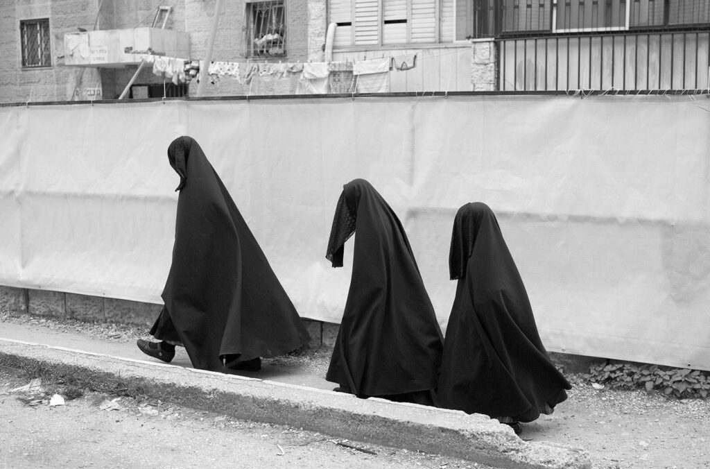 আল্লাহর সন্তুষ্টি লাভের জন্য ইহুদি নারীদের কয়েক স্তরের কাপড় দিয়ে নিজেদের আবৃত করে রাখা বাধ্যতামূলক। শরীরের কোনও অংশ অনাবৃত করার অধিকার তাদের নেই।